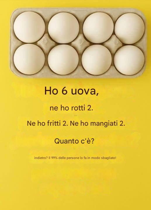 “Un contadino ha un certo numero di uova. Ne rompe alcune, ne vende altre e alla fine ne rimangono solo tre. Quante uova aveva inizialmente?”